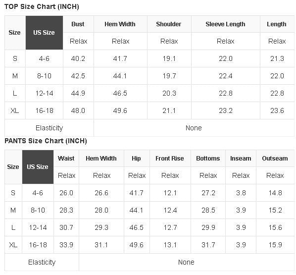 See size chart for approximate measurements.